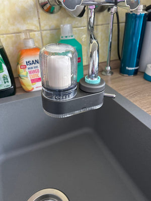 Vandfilteret blev installeret på vandhanen på få øjeblikke. Installationen var meget nem. Vi er begejstrede for det filtrerede vand.